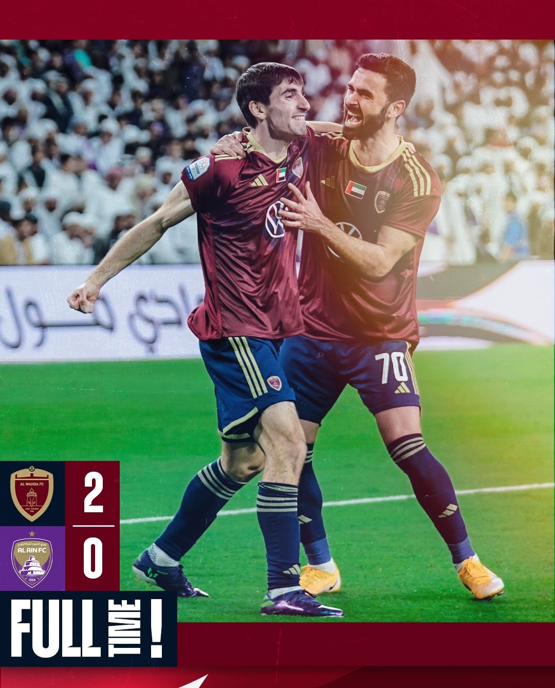 حاول العين الضغط على الوحدة من أجل تسجيل هدف التعادل لكنه فشل قبل أن يسجل الوحدة هدف تعزيز تقدمه وأضاف الهدف الثاني في الدقيقة 54 بعد هجمة مرتدة عن طريق باكاييف.