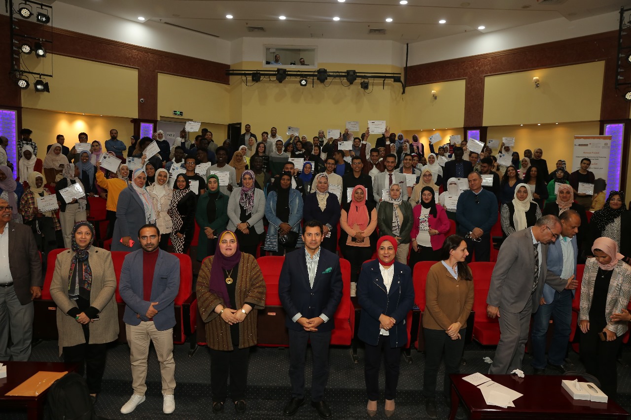 حضر حفل التخريج منال جمال رئيس الإدارة المركزية لتمكين الشباب، السيده/ ماريكا ماكو- مديرة البرامج بهيئة تير دي زوم.