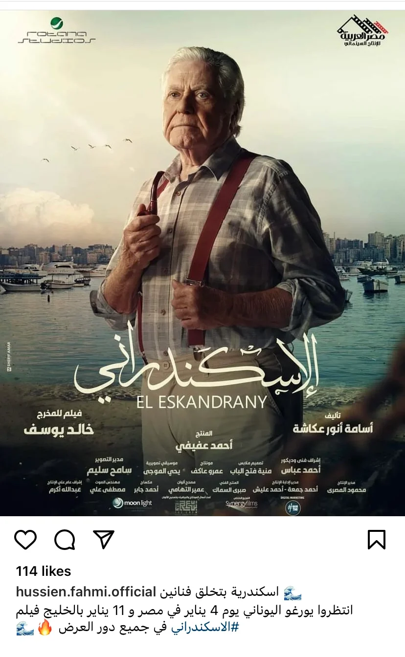 روج النجم حسين فهمي لفيلم الإسكندراني بطولة الفنان أحمد العوضي عبر حسابه بموقع تبادل الصور والفيديوهات "إنستجرام".