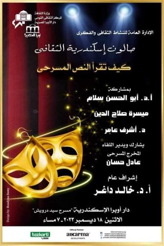 ويديرها المخرج عادل حسان وذلك في السابعة مساء الإثنين 18 ديسمبر على مسرح سيد درويش "أوبرا الإسكندرية" يدور الحوار حول أنواع النص المسرحي وطريقة الكتابة والفرق بين التقنيات المسرحية والسينمائية كما يلقى الضوء على بعض الأعمال المسرحية الشهيرة.