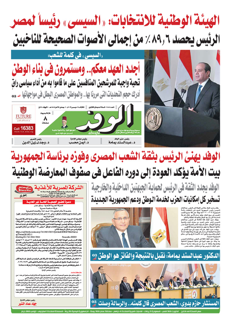 ـ الوفد يهنئ الرئيس بثقة الشعب المصري وفوزه برئاسة الجمهورية