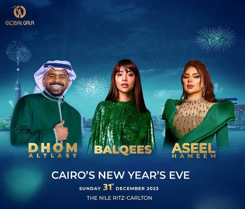 بدايةً من مصر، والتي يتألق فيها نجوم الخليج في ليلة يجتمع فيها أبرز 3 من نجومها “بلقيس، أصيل هميم، دحوم الطلاسي”، في 31 ديسمبر داخل أحد الفنادق الكبرى في القاهرة.