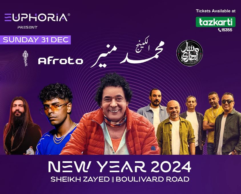 ومع الكينج محمد منير ومغني الراب عفروتو والموسيقى البديلة لـ مسار إجباري"، ثلاثتهم يجتمعون في حفل غنائي واحد، في 31 ديسمبر داخل أحد المتنزهات الكبرى بمدينة الشيخ زايد.