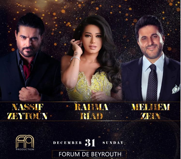 ويتلألأ لبنان بحفل غنائي ثلاثي بين “ملحم زين، رحمة رياض، ناصيف زيتون”، في 31 ديسمبر داخل أحد أماكن السهرة الكبرى في العاصمة بيروت.