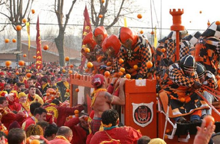 يعتبر هذا المهرجان من أكثر الفعاليات إثارة في إيطاليا، ويستمر لمدة ثلاثة أيام في مدينة إيفرا، ويجري خلالها توزيع البرتقال في شوارع المدينة، ليتبادل المشاركون في المهرجان تراشقه على بعضهم البعض.