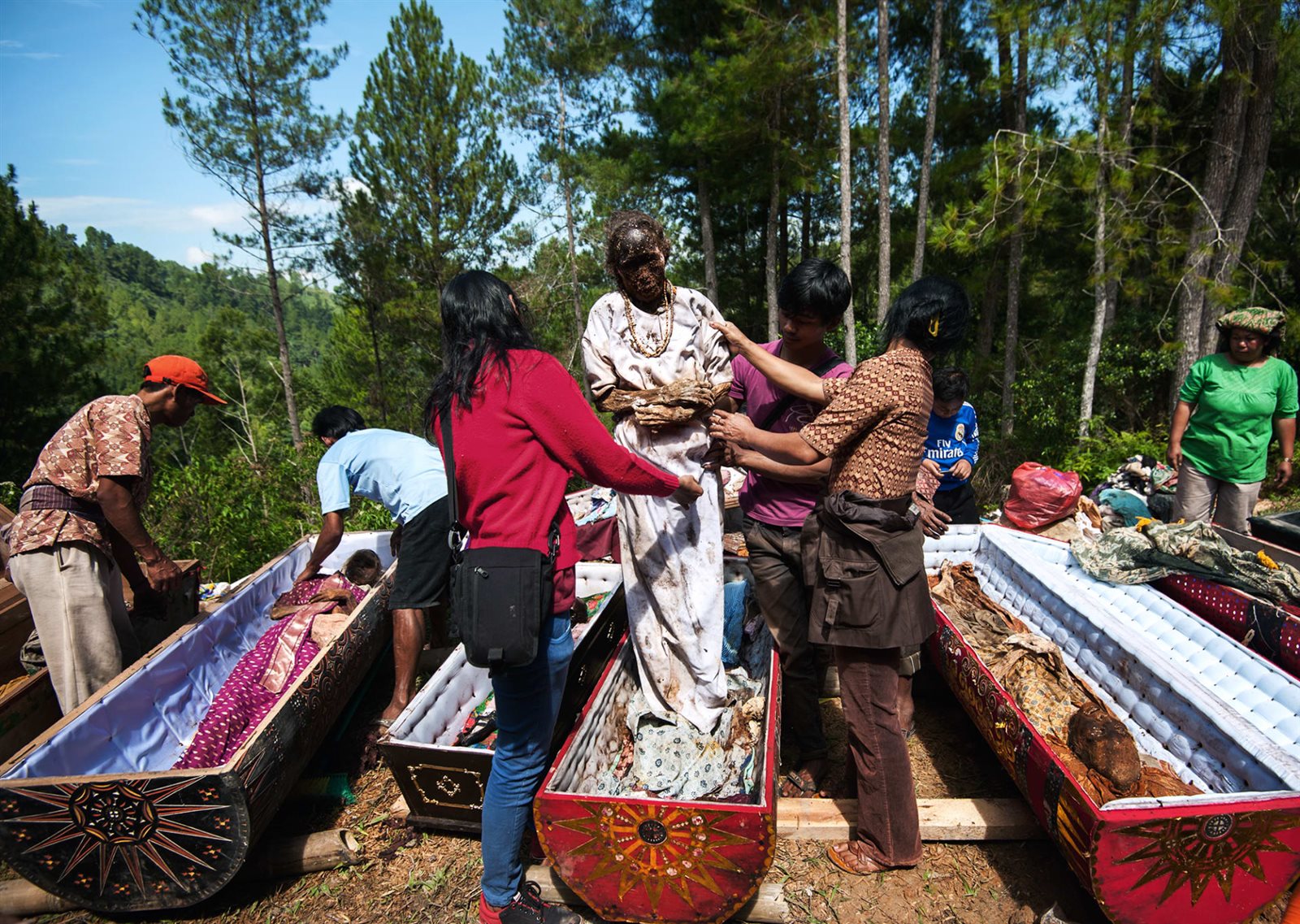 يقوم شعب التوراجا في إندونيسيا مرةً كل ثلاث سنوات بطقس خاص يٌسمى مانيني ويجري عادة في شهر أغسطس، ويتم فيه إخراج الموتى من توابيتهم، وتنظيفهم، وتغيير ملابسهم، ثم إعادة وضعهم بالتوابيت، وإعادتهم للمدفن، ويعتبرون أنّ هذا التقليد يحافظ على علاقتهم مع الموتى، وأنه طريقة لإظهار الاحترام والتقدير لهم.