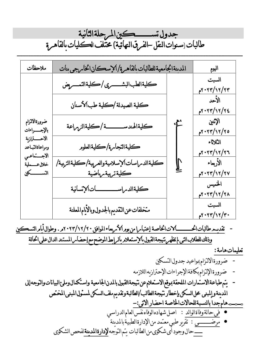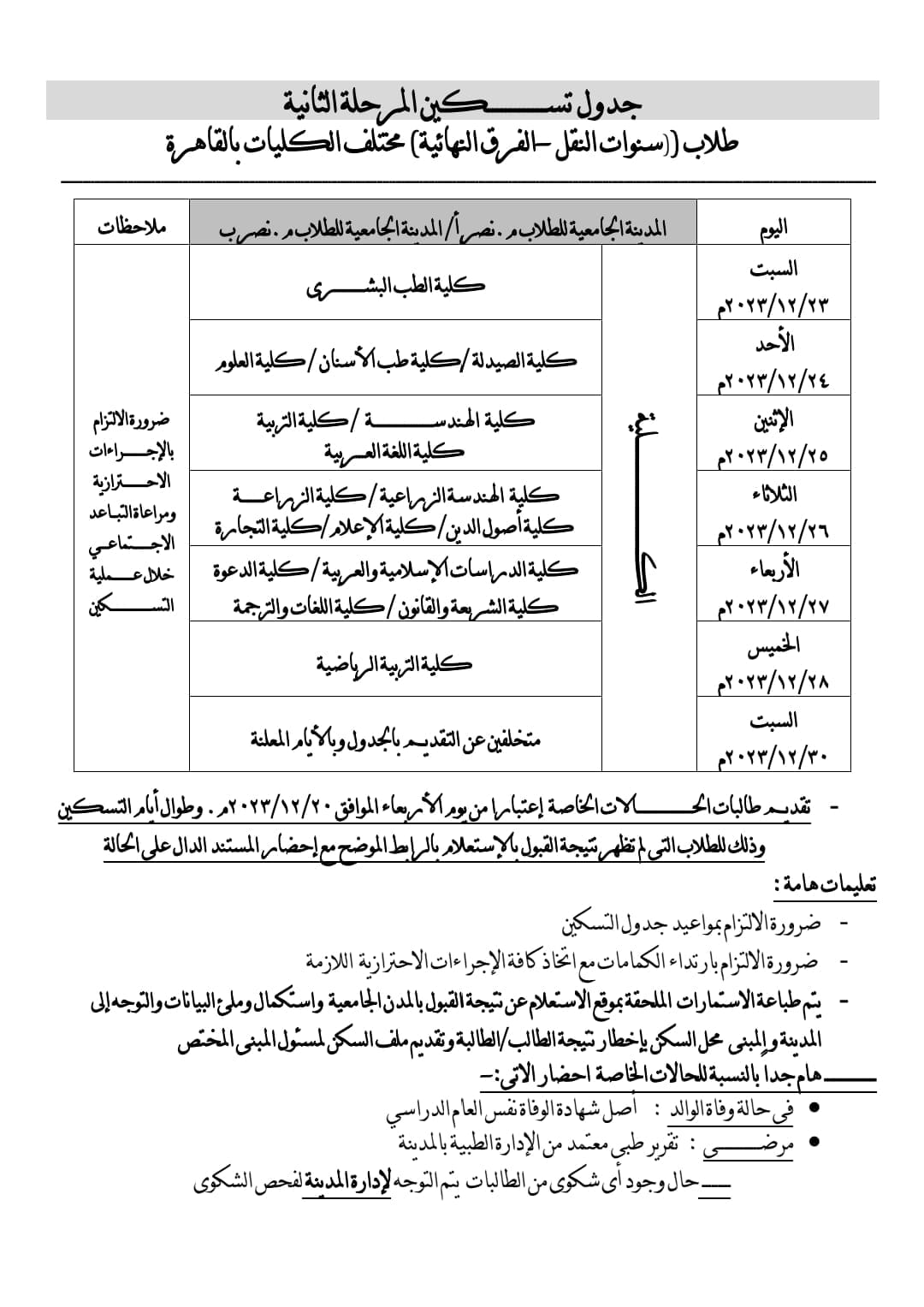 نتيجة تسكين المدن الجامعية بالضغط هـنــــــــــا