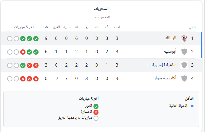 ويرغب الجهاز الفني للزمالك بقيادة معتمد جمال في تحقيق الفوز على ساجرادا، حيث يرغب في الوصول للنقطة الـ 12 لضمان التأهل للدور المقبل من البطولة.