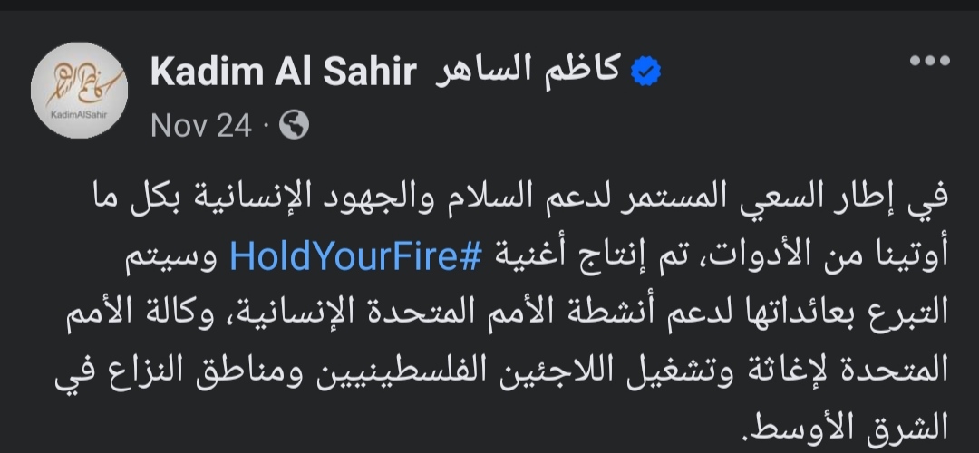 "Hold Your Fire"المقدمة لأهل فلسطين ومخصص عائدها لدعمهم إنسانيا.