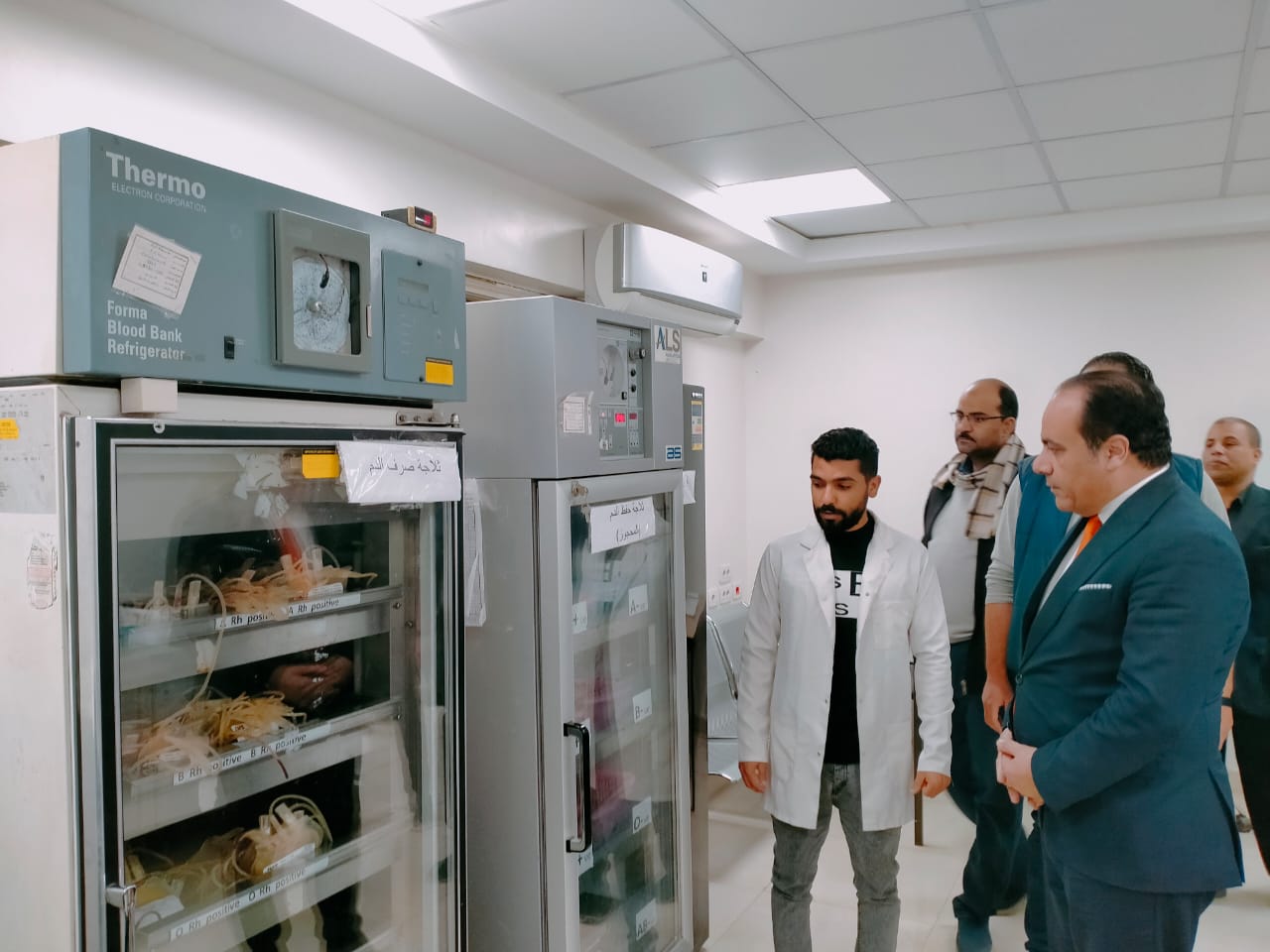 كما تفقد الدكتور أحمد حسن أبو هاشم أقسام العنايات المركزة والمتوسطة والأطفال والنساء والتوليد وبنك الدم واطمئن على توافر أرصدة اكياس الدم من الفصائل المختلفة وكذلك تفقد معمل المستشفى وانتظام العمل به.
