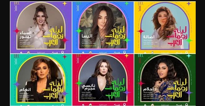 أعلنت شركة روتانا للصوتيات والمرئيات، حفل غنائي فى ليلة رأس السنة، يضم 6 نجمات، أبرزهم أصالة نصري وأحلام الشامسي واليسا وأنغام ونانسي عجرم وأسماء لمنور، على مسرح محمد عبده، يوم 31 ديسمبر الجاري، ضمن فعاليات موسم الرياض بالمملكة العربية السعودية.