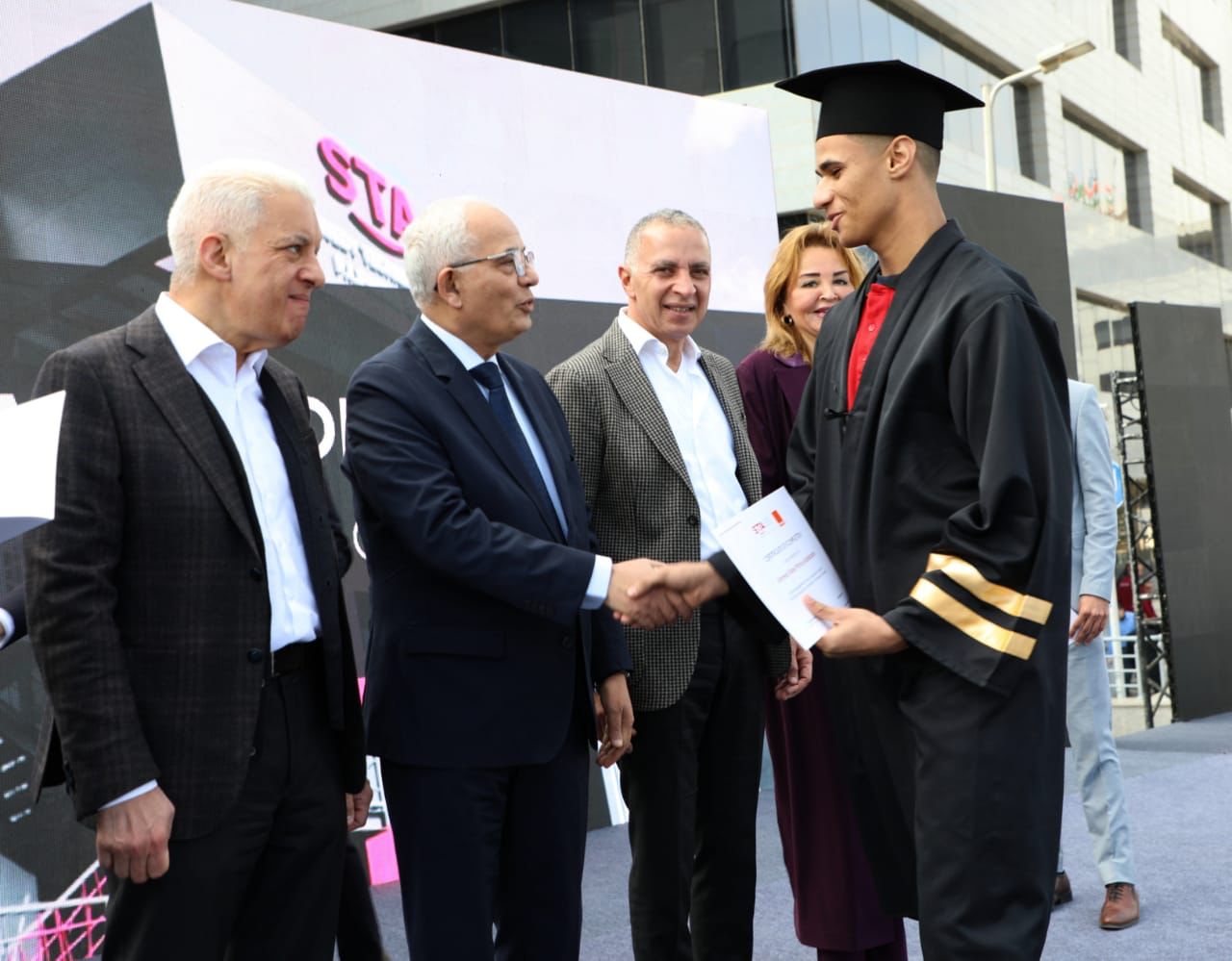 شهد الدكتور رضا حجازى، وزير التربية والتعليم والتعليم الفنى، اليوم السبت، احتفالية تخرج الدفعة العاشرة من طلاب أكاديمية السويدى، التي يبلغ عدد طلابها ٣٥٠ طالبًا وطالبة، وأقيمت بمقر مؤسسة السويدي إلكتريك بالتجمع الخامس.