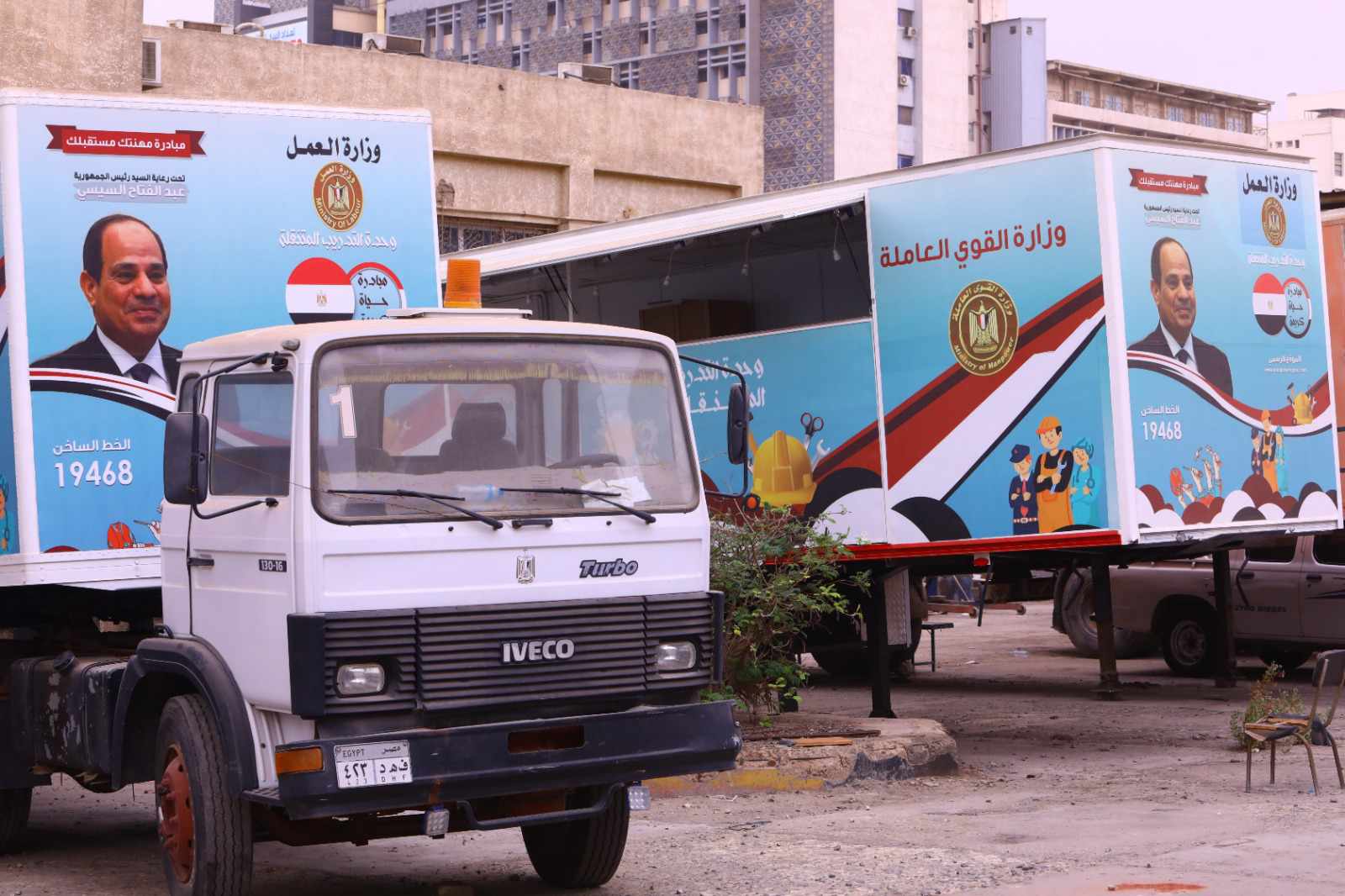 وأعلن وزير العمل، حسن شحاتة، أن هذه العربات سوف تنطلق إلى محافظات: الأسكندرية والوادي الجديد، والشرقية، وجنوب سيناء، وسوهاج، والأقصر، والبحر الأحمر، وكذلك شمال سيناء، تنفيذًا لخطة الدولة بتنمية هذه المحافظات الإستراتيجية.