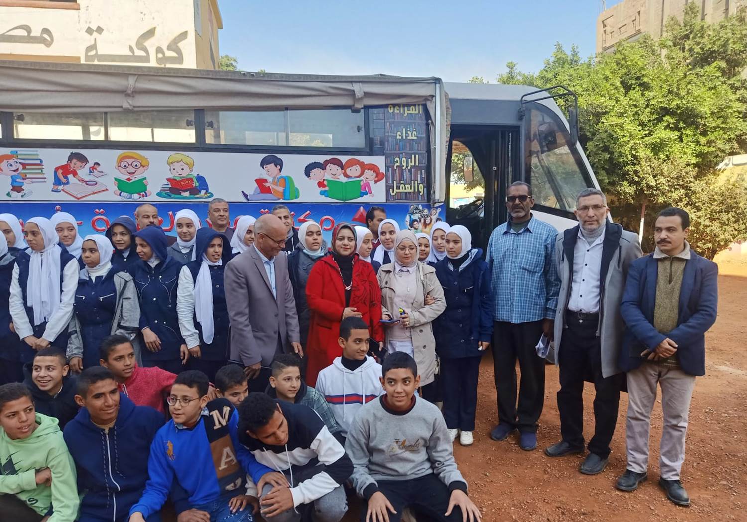 أسيوط: زيارة مكتبة مصر العامة المتنقلة لمدرستي الثانوية الفندقية وموشا الإبتدائية