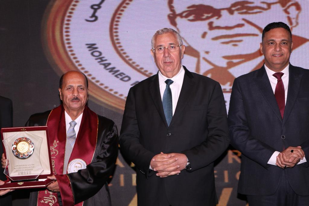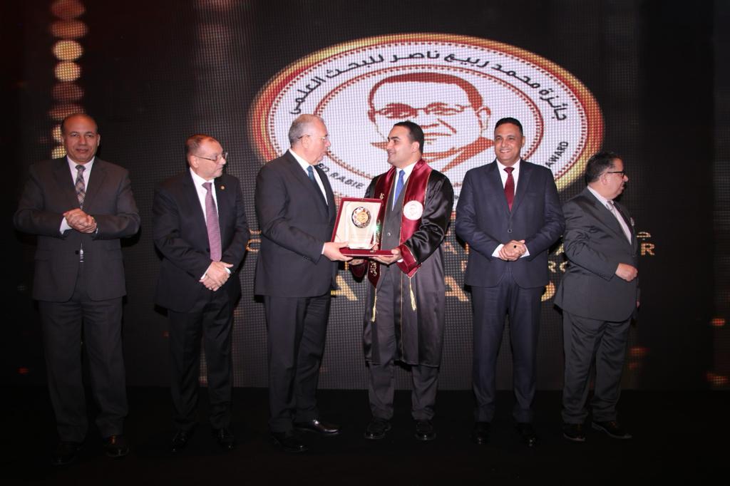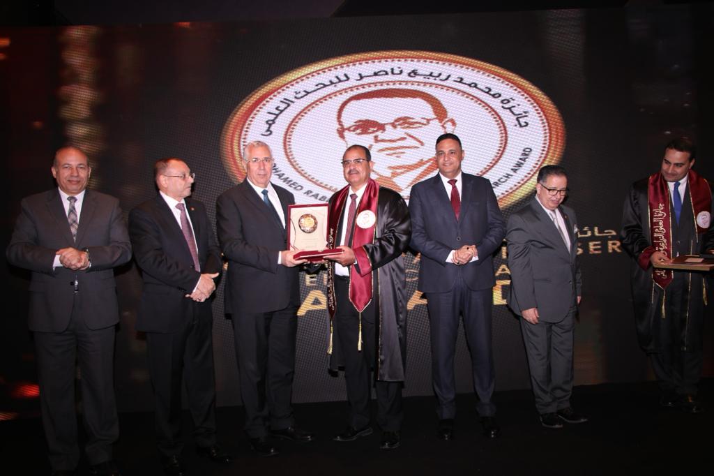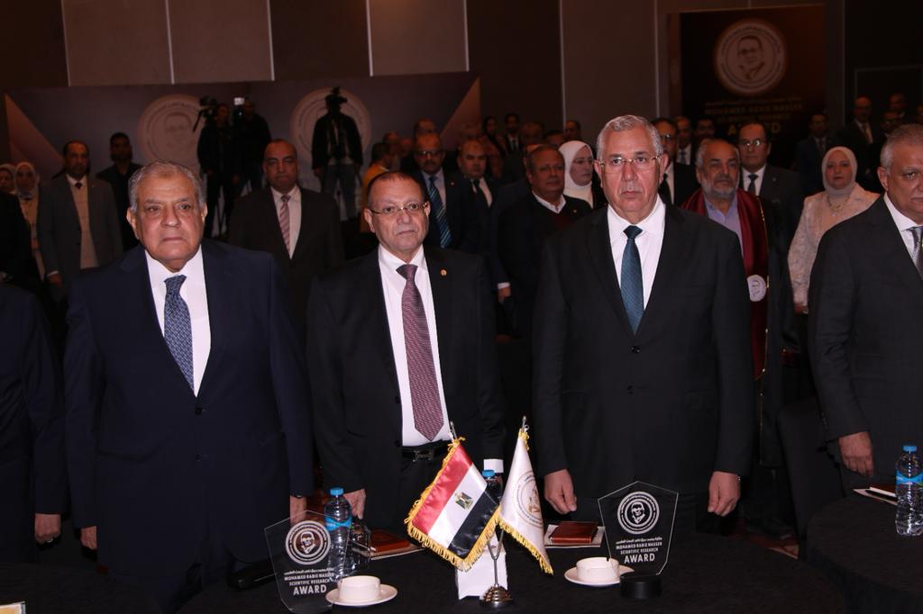 حيث قام وزير الزراعة بتسليم الفائزين بالجوائز في مجال الزراعة والامن الغذائي وهم الدكتور محمد احمد عبد الفتاح العيسوي الاستاذ بقسم النبات بكلية العلوم جامعة طنطا، والدكتور دسوقي أحمد محمد عبدالحليم الأستاذ بقسم التكنولوجيا الحيوية البيئية بمعهد بحوث الهندسة الوراثية والتكنولوجيا الحيوية بمدينة الابحاث العلمية والتطبيقات التكنولوجية ببرج العرب بالاسكندرية.والدكتور حمدي فتوح الموافي استاذ بقسم المحاصيل الحقلية -معهد بحوث المحاصيل الحقلية بمركز البحوث الزراعية وزارة الزراعة واستصلاح الأراضي لمساهمته فى المشروع القومي لتطوير انتاج الأرز الهجين والأرز السوبر تحت ظروف ندرة المياة والتغيرات المناخ.