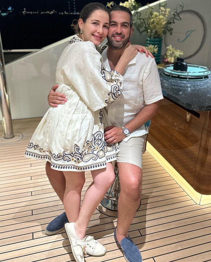 أعلنت شام الذهبى حملها عبر صور شاركتها مع متابعيها على إنستجرام برفقة زوجها في سان تروبيه وكتبت في تعليقها ما معناه "نحن اثنان فقط..لغاية الآن".