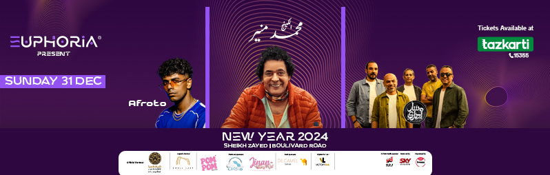 يلتقي الكينج محمد منير والفريق الغنائي الشهير مسار إجباري ومغني الراب الشهير عفروتو يوم الأحد 31 ديسمبر، على أحد المسارح الكبرى بمدينة الشيخ زايد.