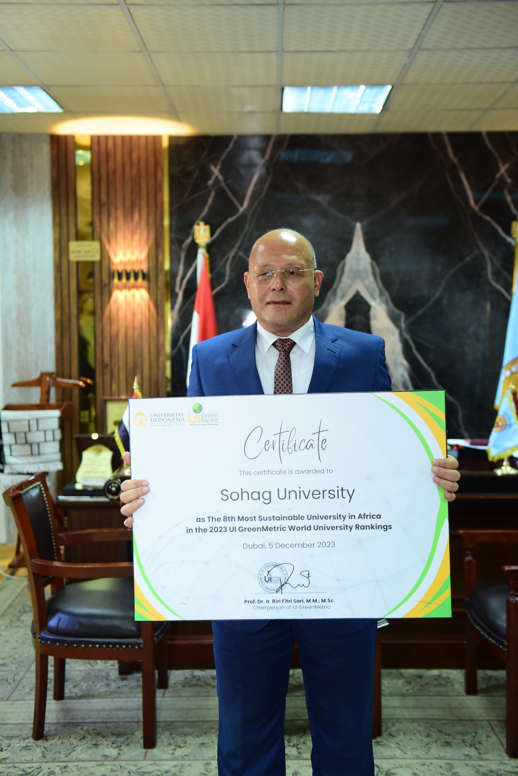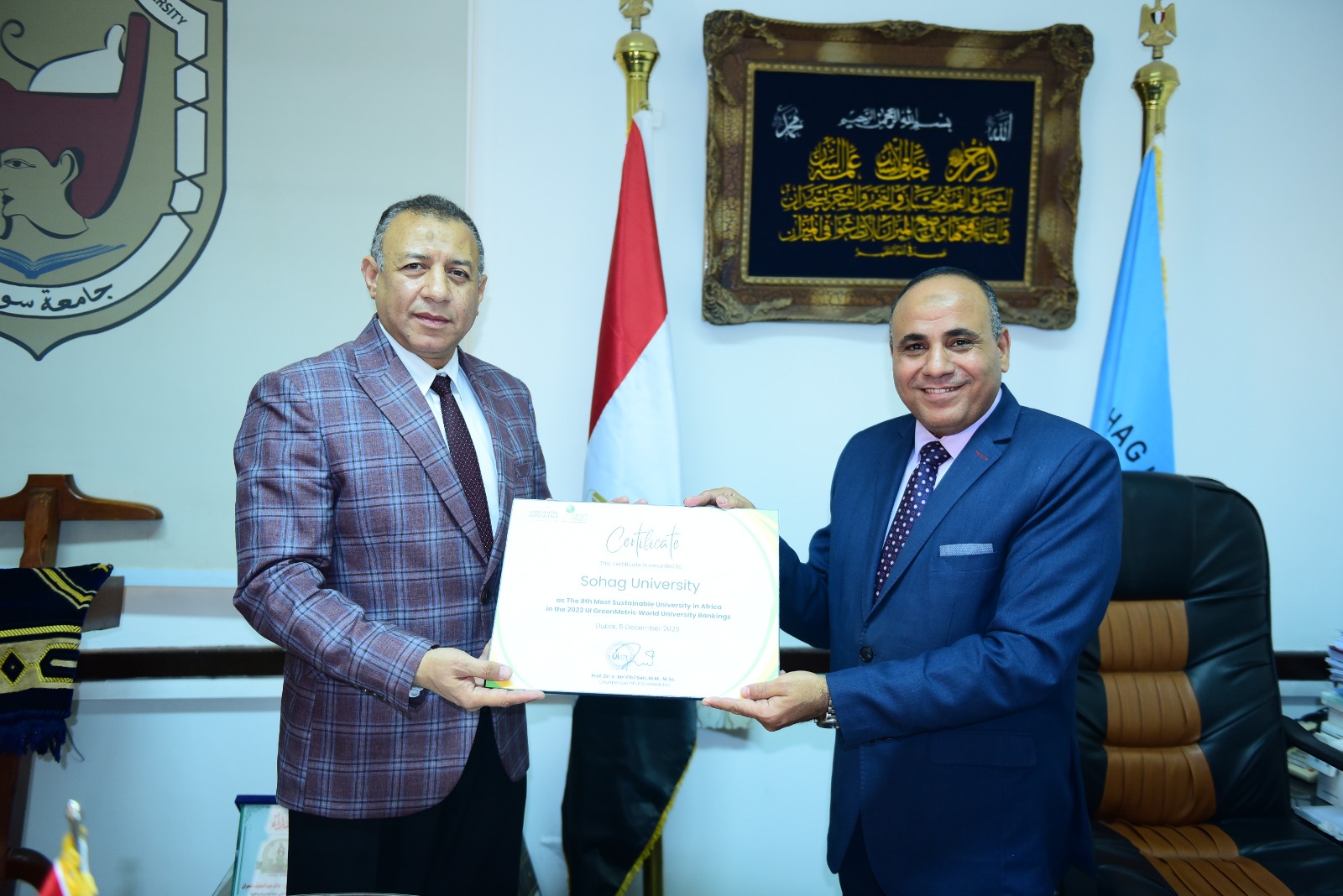 رئيس جامعة سوهاج يتسلم شهادة التصنيف الدولي للجامعات الأكثر استدامة