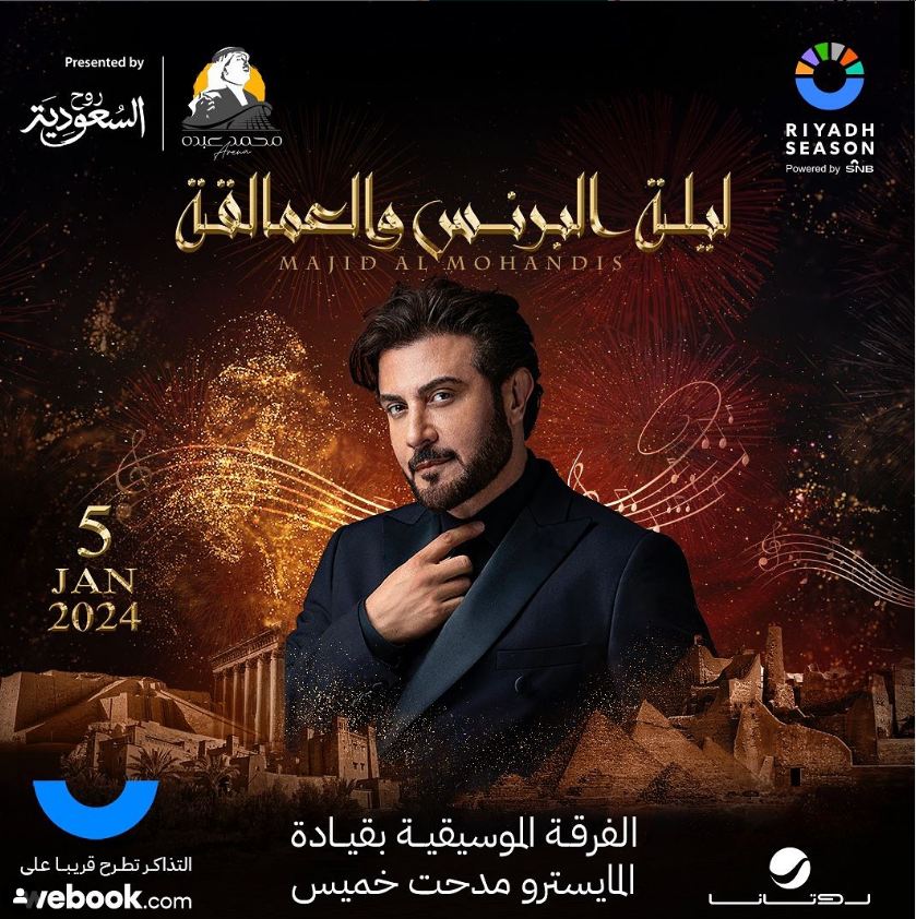 يقام الحفل في موعده الجديد 5 يناير 2024، على مسرح محمد عبده أرينا بقيادة موسيقية للمايسترو وليد فايد.