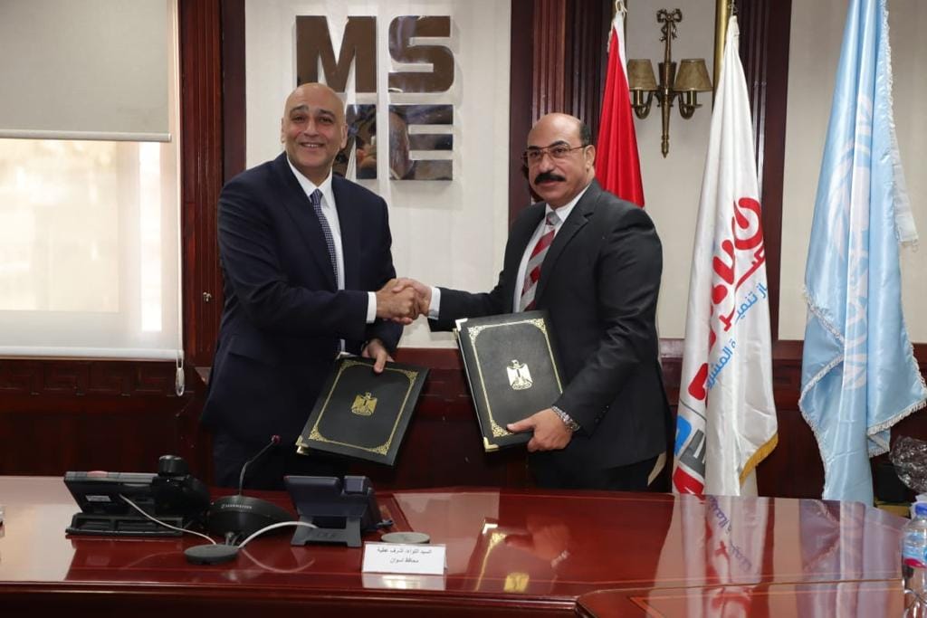 وقام كل من باسل رحمي، الرئيس التنفيذي لجهاز تنمية المشروعات المتوسطة والصغيرة ومتناهية الصغر، واللواء أشرف عطية، محافظ أسوان، بتوقيع العقد الأول بقيمة 2 مليون جنيه، وذلك بحضور روحي أفغاني، نائب الممثل المقيم لبرنامج الأمم المتحدة الإنمائي، ولفيف من مسئولي الجهاز والمحافظة وبرنامج الأمم المتحدة الإنمائي.