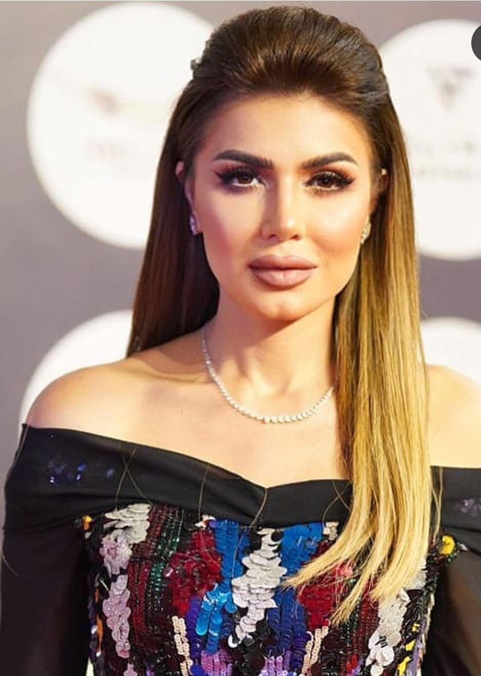 أما من الناحية الجمالية، اعتمد تسريحة شعر ناعمة للوراء ووضعت مكياجًا صاخبًا مرتكزًا على ألوان النود ليتناغم مع لون بشرتها الخمرية مع تحديد حواجبها واستخدام الكحل والماسكرا لاظهار جمال عينيها ولون الكشمير في الشفاه.