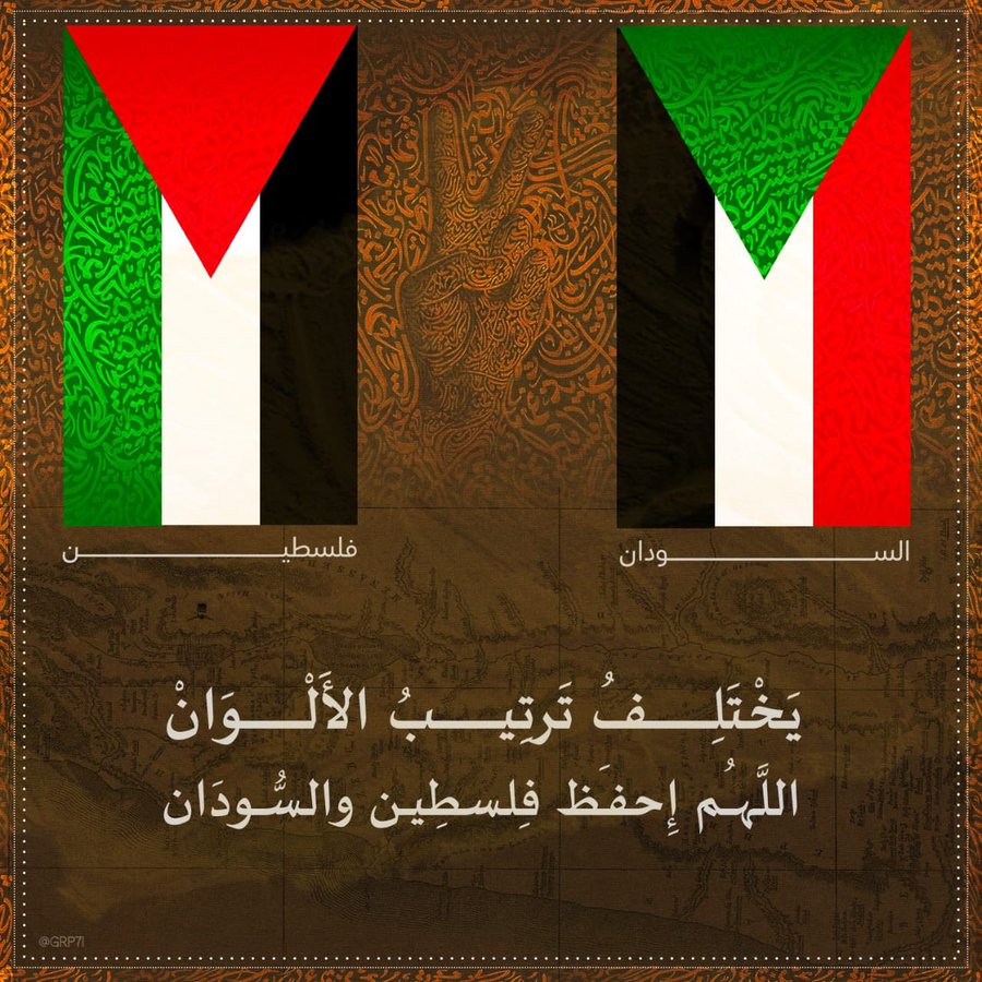 ونشرت أحدهم علم البلدين مكتوبًا عليهما، يختلف ترتيب الألوان اللهم احفظ فلسطين والسودان.