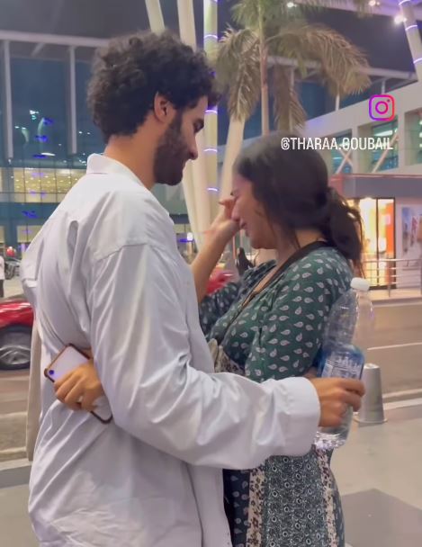 لحظة وداع ثراء جبيل لزوجها في المطار بالدموع