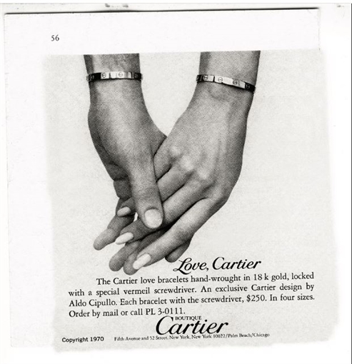 بدأت أحداث القصة المفجعة التي تسببت في تصميم سوار Cartier Love الكلاسيكي في الستينيات، وتحديدًا في عام 1959، عندما هاجر الشاب ألدو سيبولو روما إلى نيويورك، وبدأ العمل لدى شركات المجوهرات الأمريكية الكبرى، بما في ذلك Tiffany & Co. وDavid Webb.