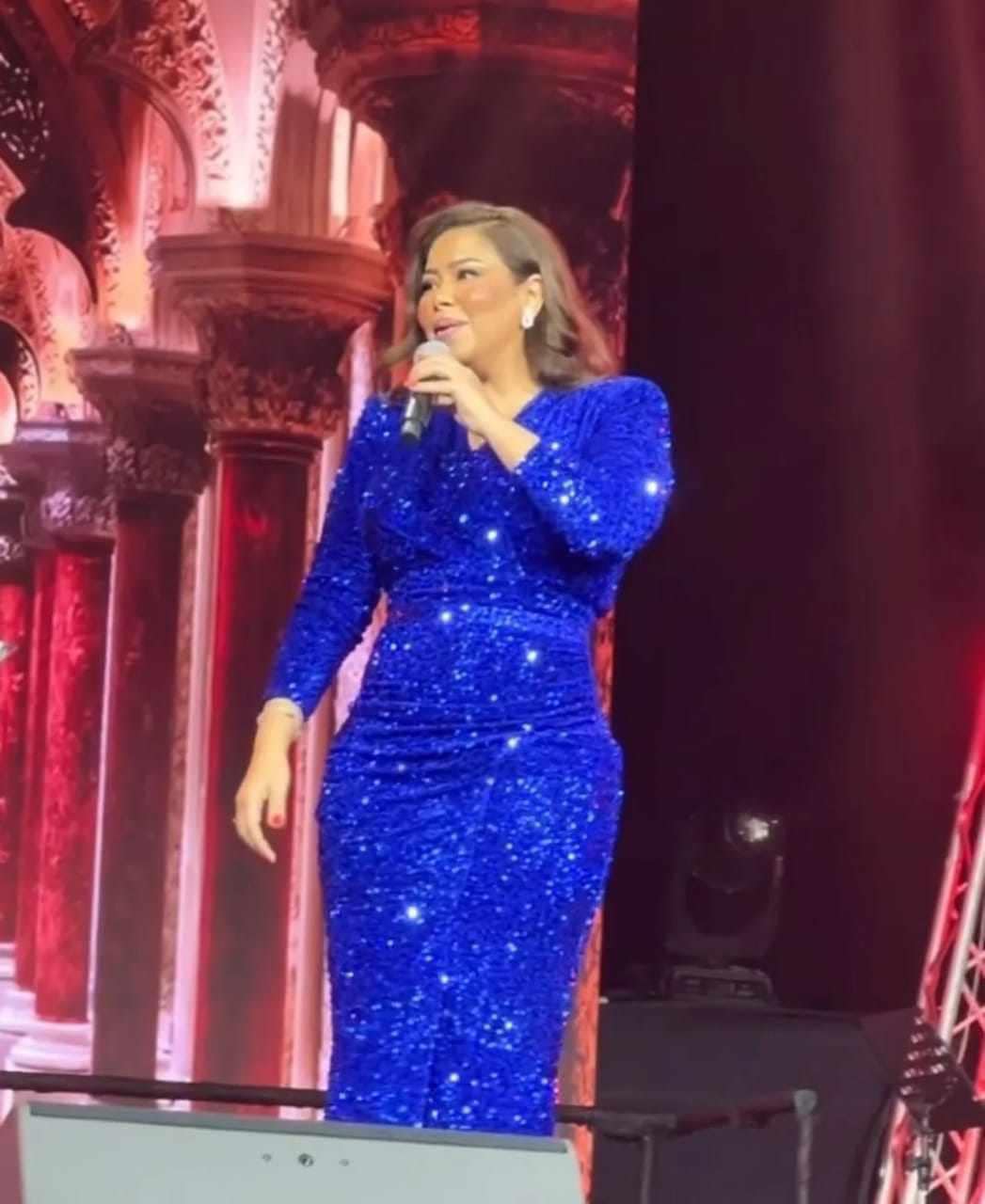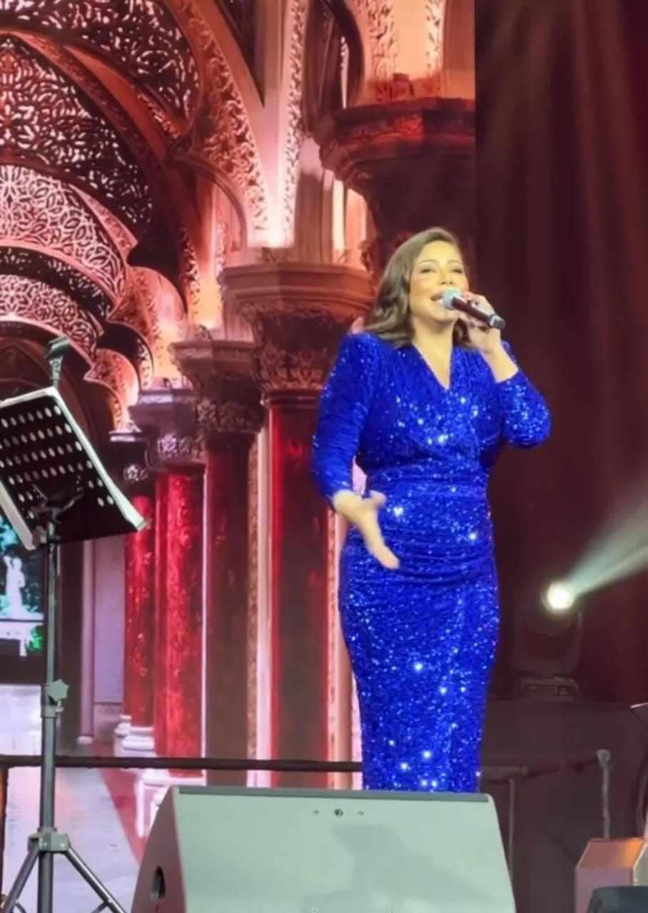 أطلت شيرين عبد الوهاب بفستان أزرق اللامع والذي أظهرها بوزن أقل، وتغنت بمجموعة من أغانيها المفضلة" الوتر الحساس، الكدابين، كلام عينيه، تاج راسك، على بالي، انكتبلي عمر، وغيرها.