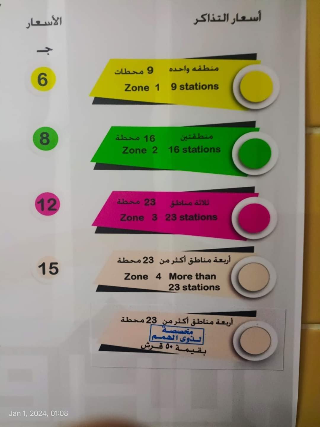 أسعار تذاكر المترو
