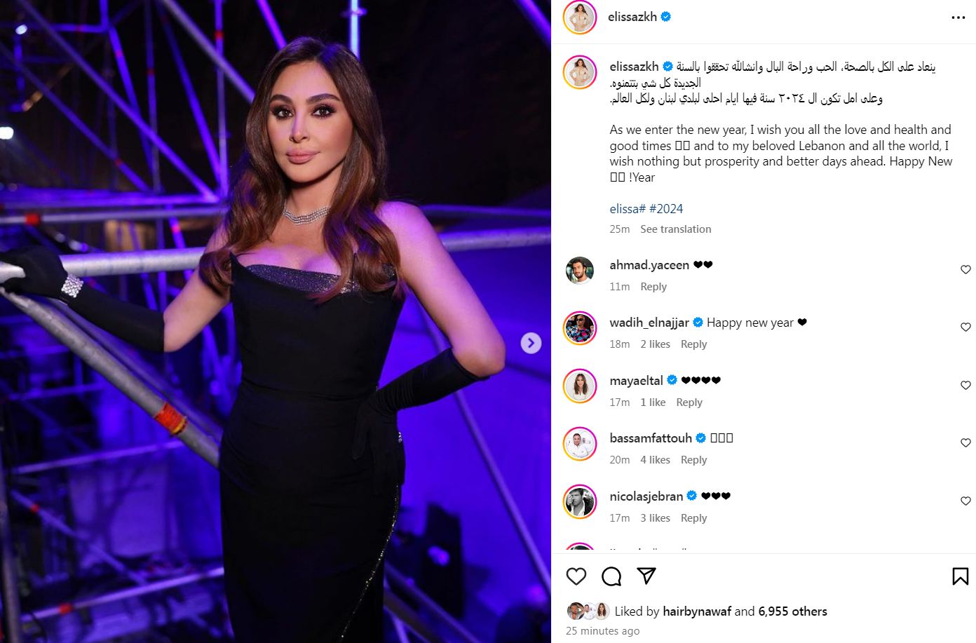 وعلقت على الصور، قائلة: "ينعاد على الكل بالصحة، الحب وراحة البال وانشالله تحققوا بالسنة الجديدة كل شي بتتمنوه، وعلى امل تكون ال ٢٠٢٤ سنة فيها ايام احلى لبلدي لبنان ولكل العالم".