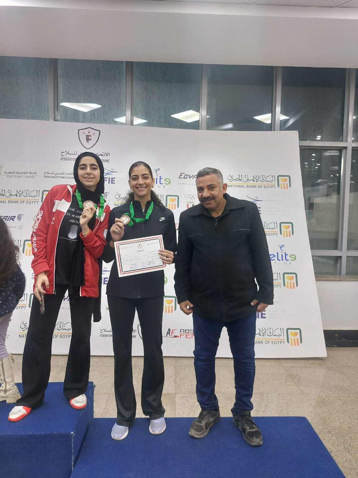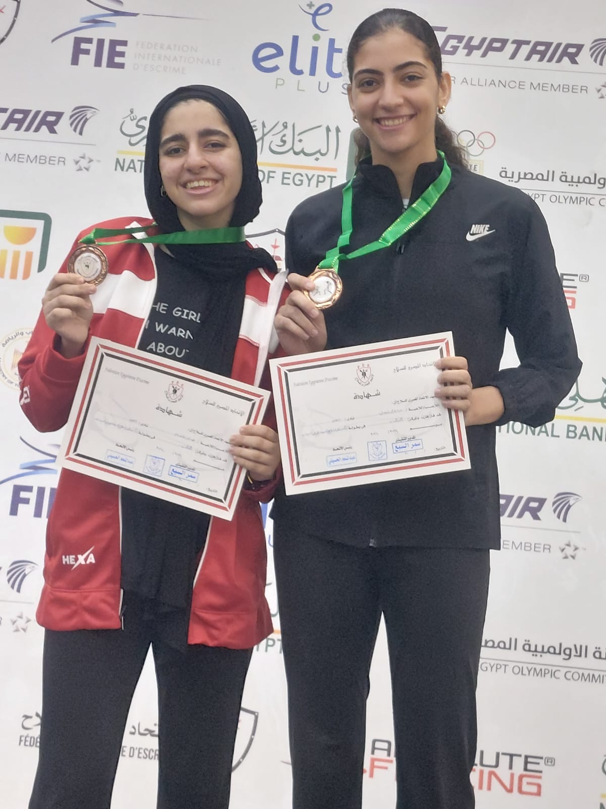 وفى منافسات سلاح السيف حصدت اللاعبتان سارة شومان وخديجة هشام المركز الثالث والميدالية البرونزية لكل منهن.