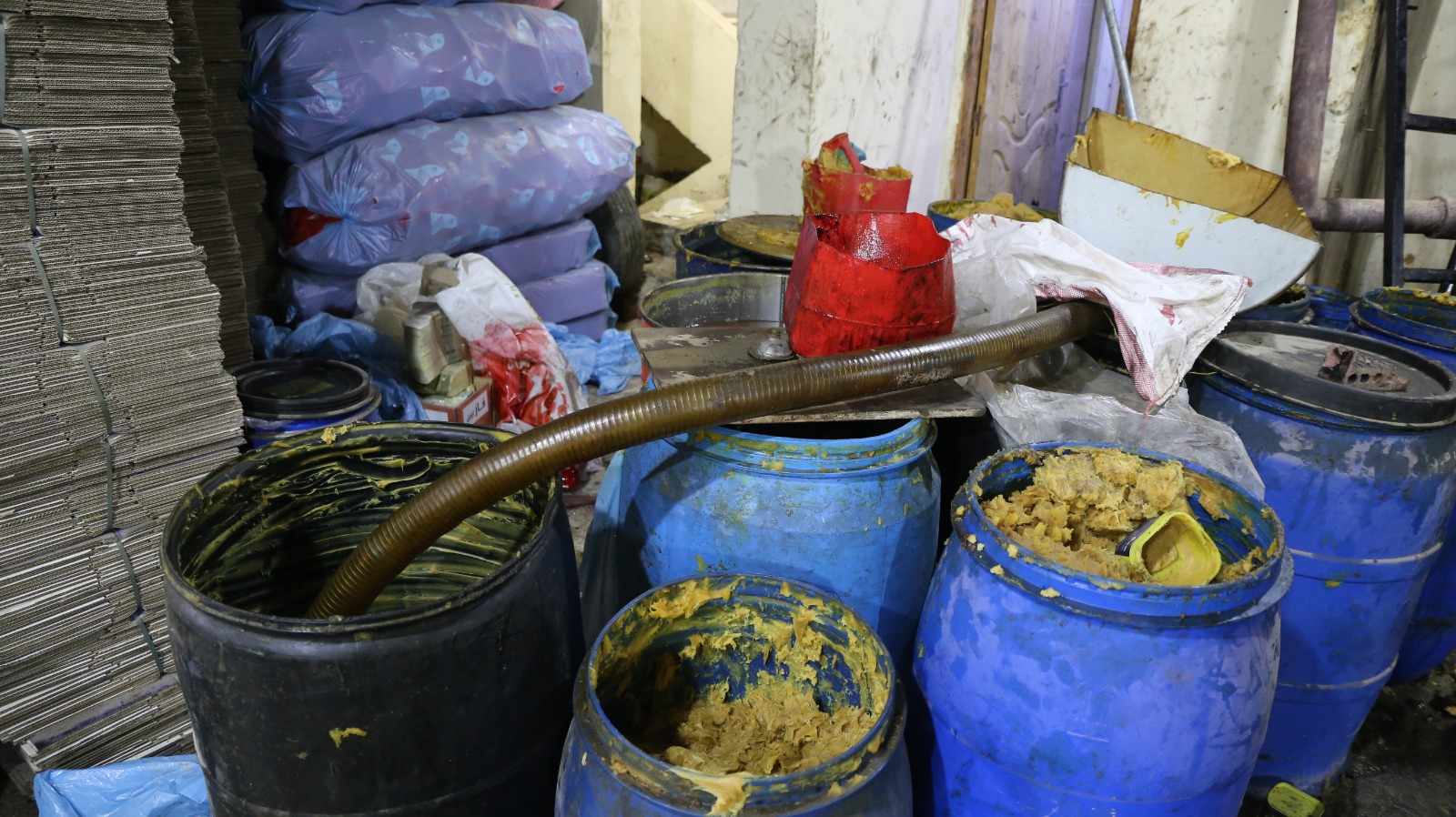 ضبط مصنع لإعادة وتدوير زيوت محركات السيارات بـ6 أكتوبر..صور