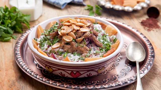 على خطى المطبخ الفلسطيني.. طريقة تحضير فتة المسخن باللوز والرمان