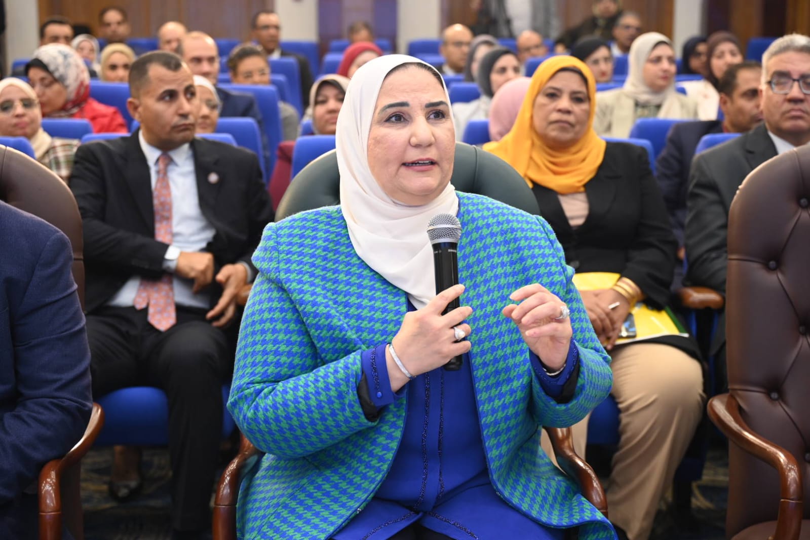 وأشارت وزيرة التضامن الاجتماعي إلى الاهتمام بالعاملين بديوان عام الوزارة والمديريات فى إطار رفع الكفاءة وتطوير المهارات عبر البرامج التدريبية المكثفة للارتقاء بالأداء مع مشاركة الخبرات لتحقيق التكامل، مما انعكس ذلك فى زيادة عدد القيادات خاصة النسائية التى تولت قيادة العمل بالمديريات وقدمت نجاحا كبيرا يحسب لها ويوازى ذلك العمل على منظومة الشكاوى الإلكترونية والتى سيتم ربطها بمنظومة الشكاوى بمجلس الوزراء من أجل تقديم خدمة متميزة.