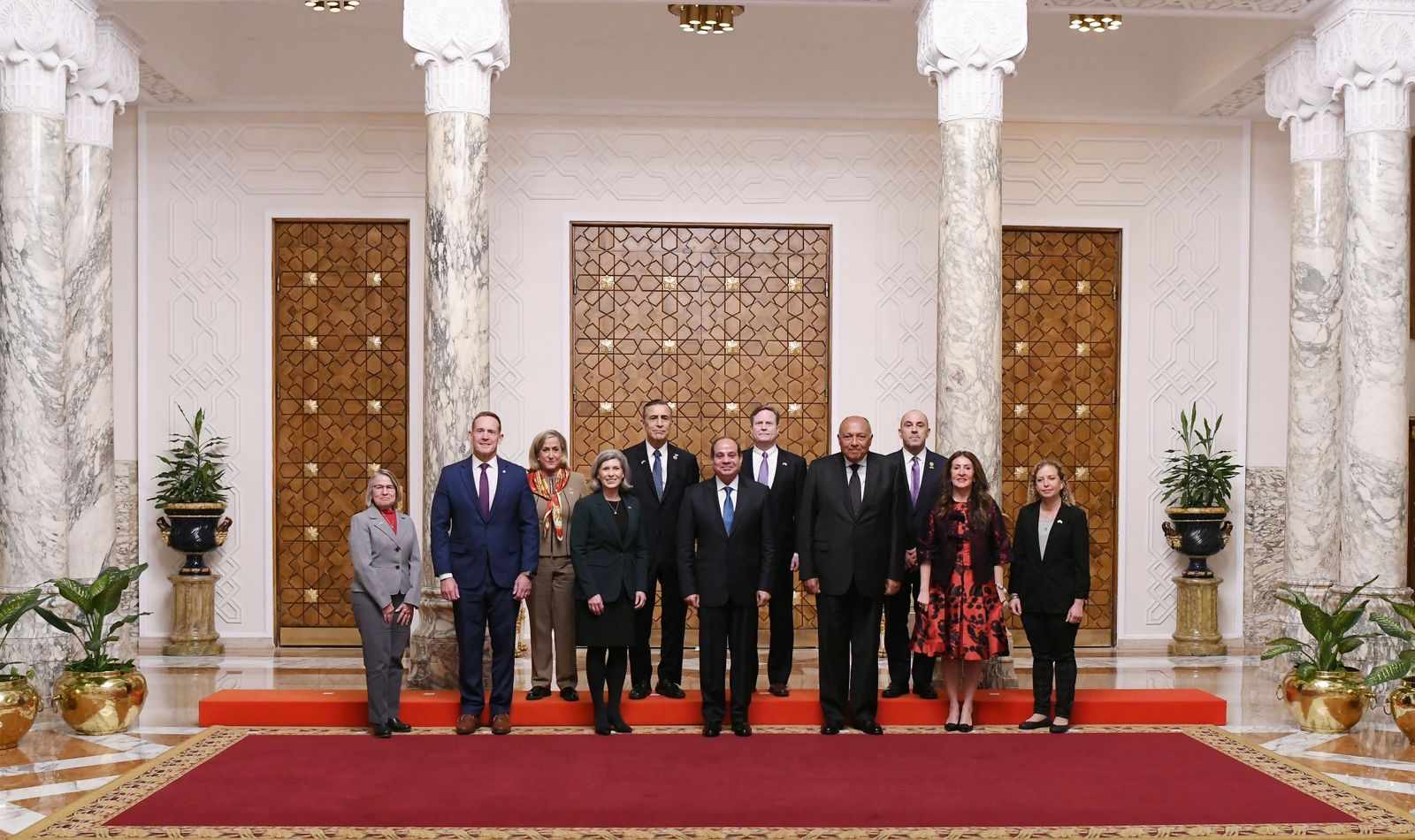 استقبل الرئيس عبد الفتاح السيسي اليوم وفداً من الحزبين الديمقراطي والجمهوري من مختلف اللجان بالكونجرس الأمريكي، برئاسة السيدة السيناتور "جوني إرنست"، وذلك بحضور سامح شكري وزير الخارجية.
