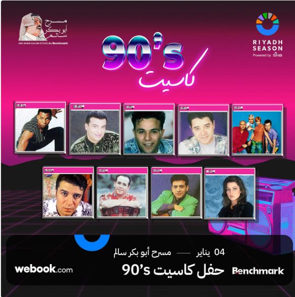 ساعات قليلة تفصلنا عن الحدث الفني الضخم “كاسيت 90” والذي يضم أبرز نجوم أغاني التسعينيات، ضمن فعاليات موسم الرياض.