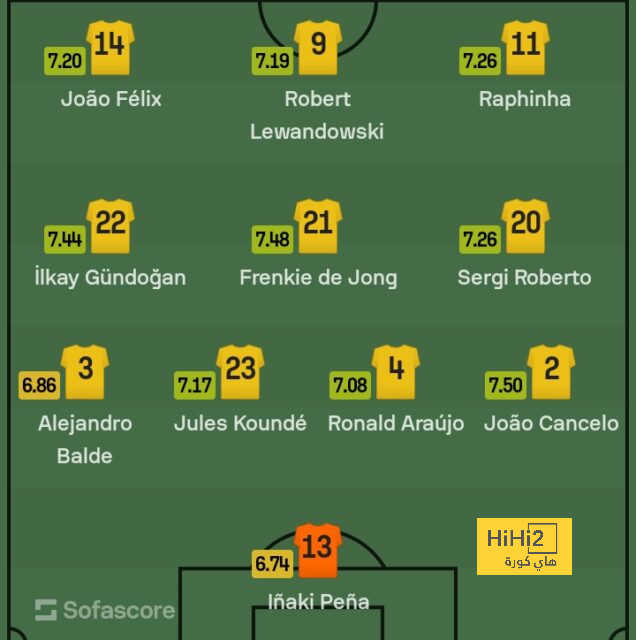 خط الوسط: روميو- سيرجي روبرتو- دي يونج- جوندوجان- لامين يامال.