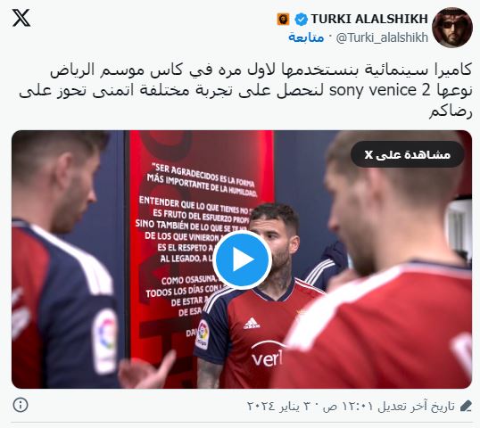 ونشر تركي آل الشيخ مقطع فيديو خاص بكاميرا سينمائية، من المقرر أن تستخدم في كأس موسم الرياض لأول مرة، وذلك عبر حسابه الشخصي بمنصة التغريدات المُصغرة "إكس".