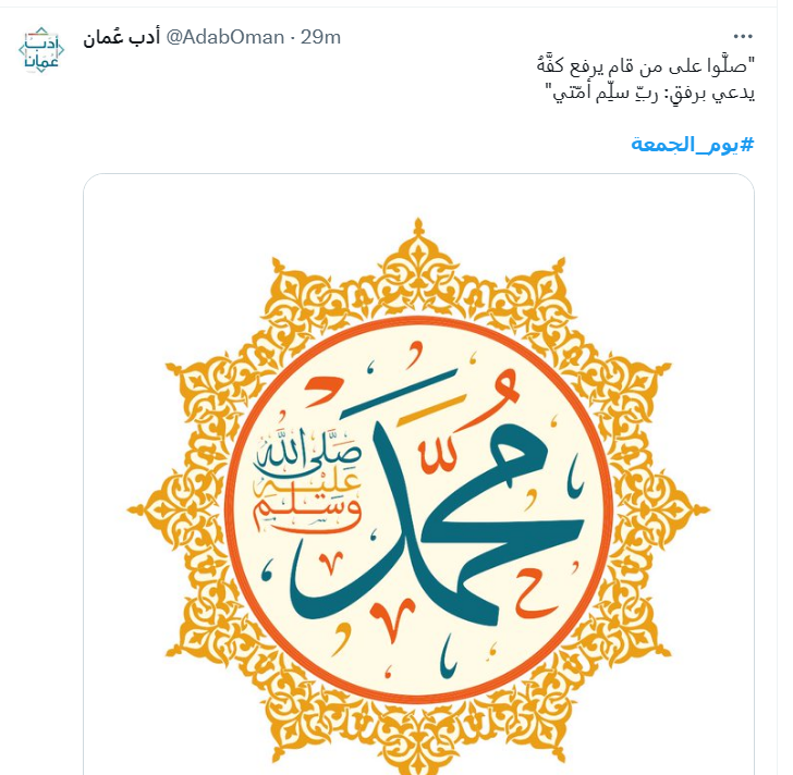 واستشهد أحد المغردين بآية من سورة الأحزاب المذكور فيها دعوة المؤمنين للصلاة على سيدنا محمد صلى الله عليه وسلم: (إِنَّ اللَّهَ وَمَلائِكَتَهُ يُصَلُّونَ عَلَى النَّبِيِّ يَا أَيُّهَا الَّذِينَ آمَنُوا صَلُّوا عَلَيْهِ وَسَلِّمُوا تَسْلِيمًا).