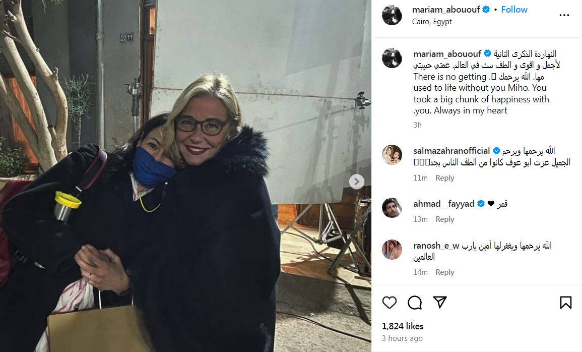 ونشرت مريم أبو عوف، مجموعة صور لها مع عمتها، وعلقت عليها قائلة: "النهارده الذكرى التانية لأجمل وأقوى وألطف ست في العالم، عمتي حبيبتي مها.. الله يرحمك".