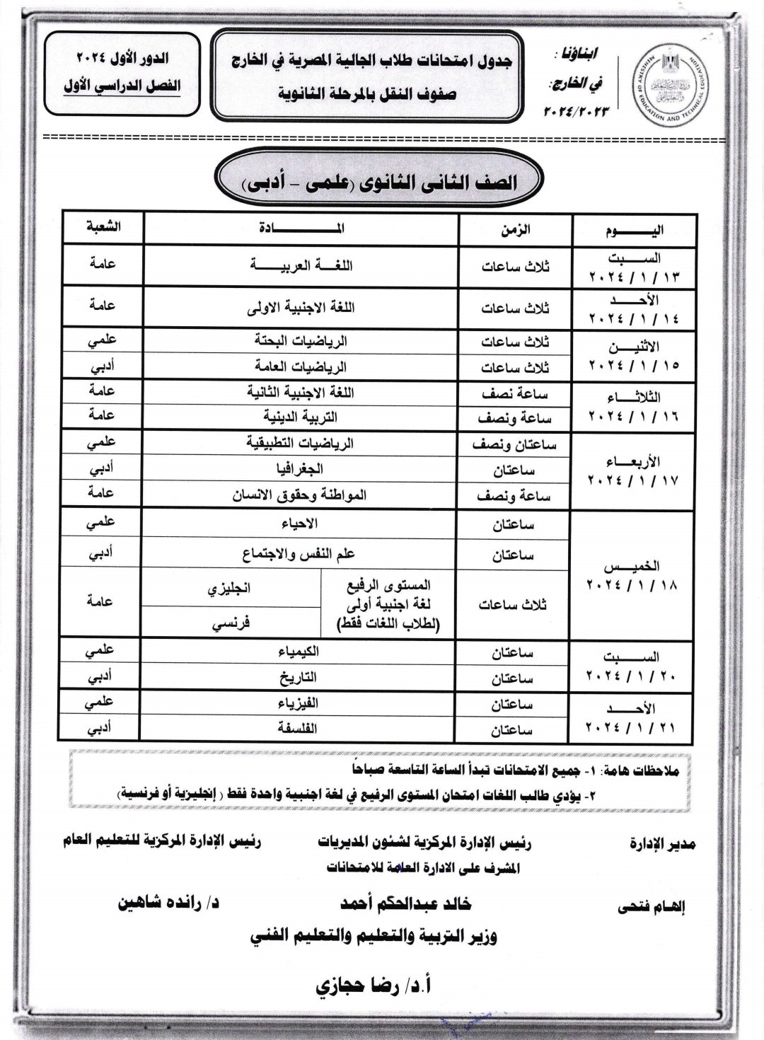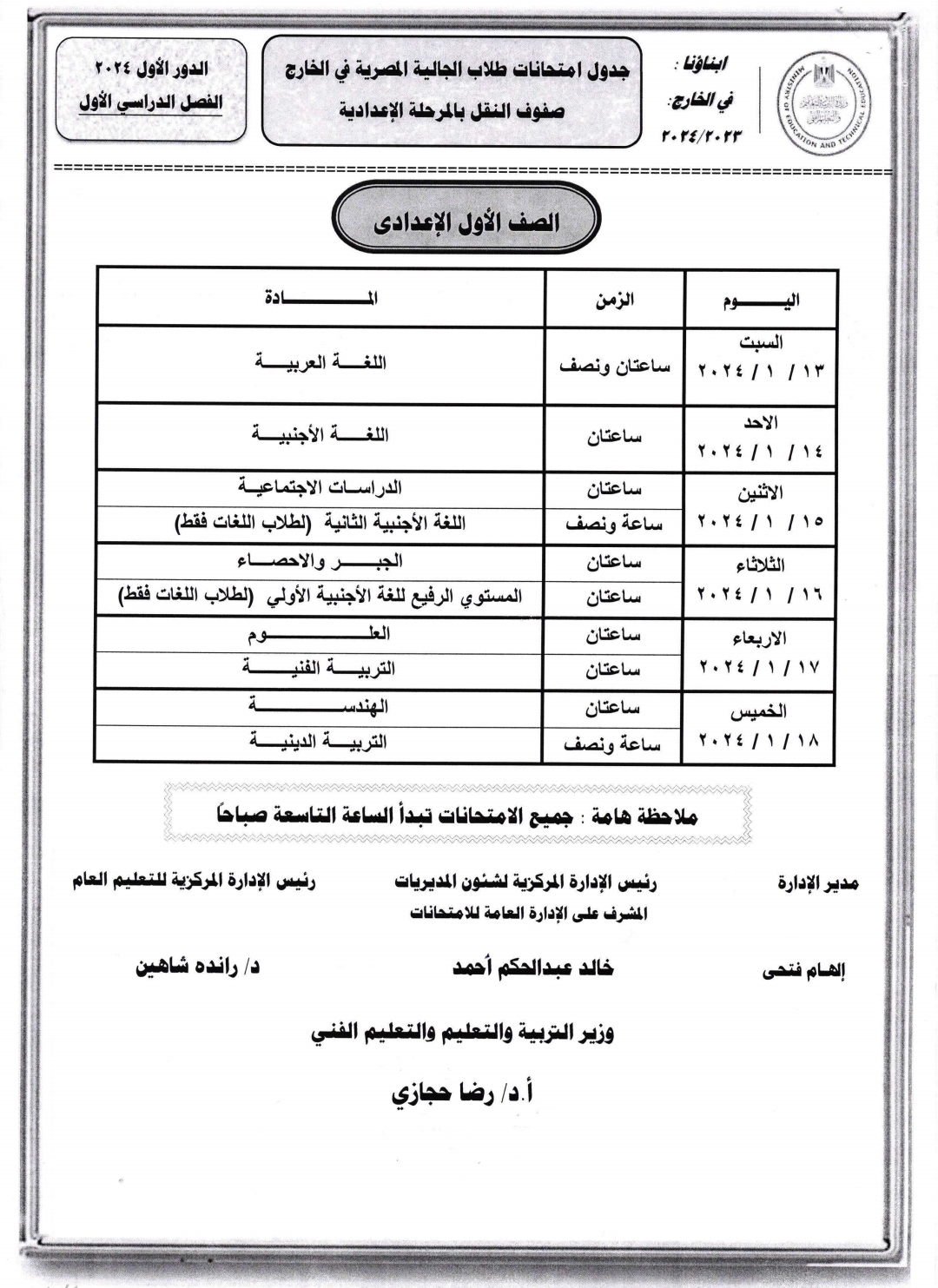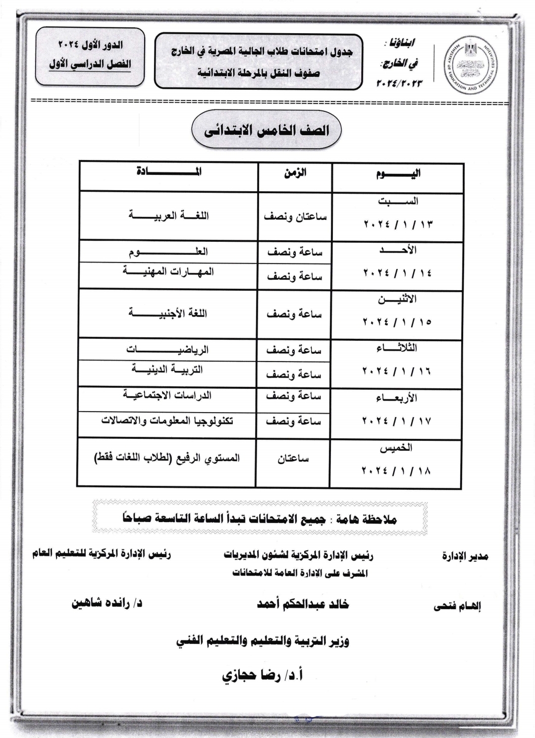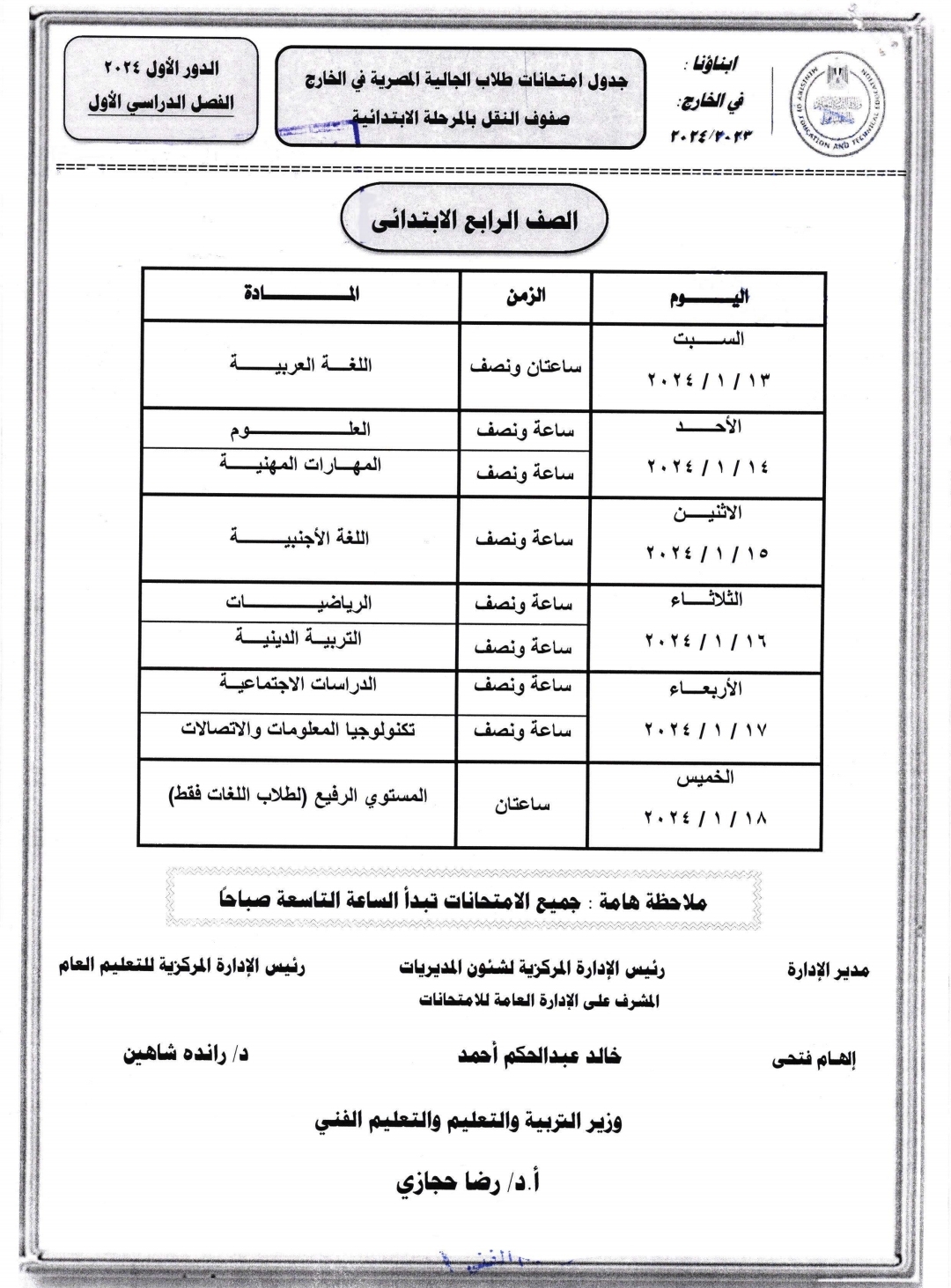جدول امتحانات أبنائنا في الخارج للفصل الدراسي الأول 2024