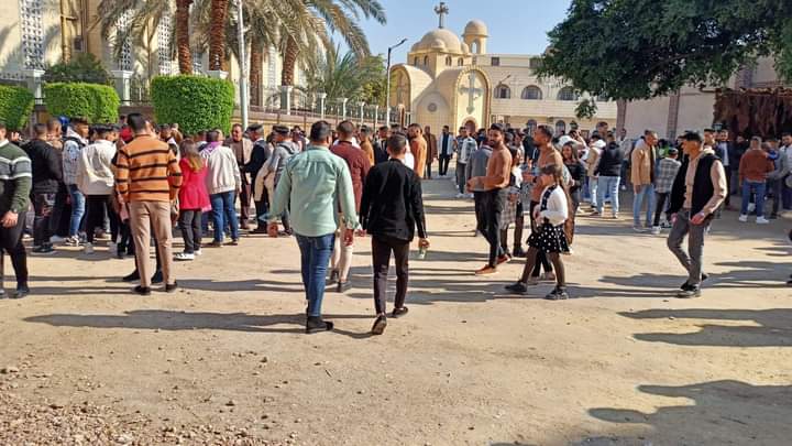 توافد المئات من مختلف الأعمار، اليوم الأحد، إلى دير الأنبا بضابا بنجع حمادي بمحافظة قنا، وذلك لحضور قداس العيد وأداء الصلاة عيد الميلاد المجيد، والاحتفال وتقديم التهنئة لرجال الدين المسيحى، حيث حرص العديد بالتوافد على الدير منذ ساعات الصباح الأولى مصطحبا أسرته وذلك لتقديم التهنئة والاحتفال باجواء العيد.