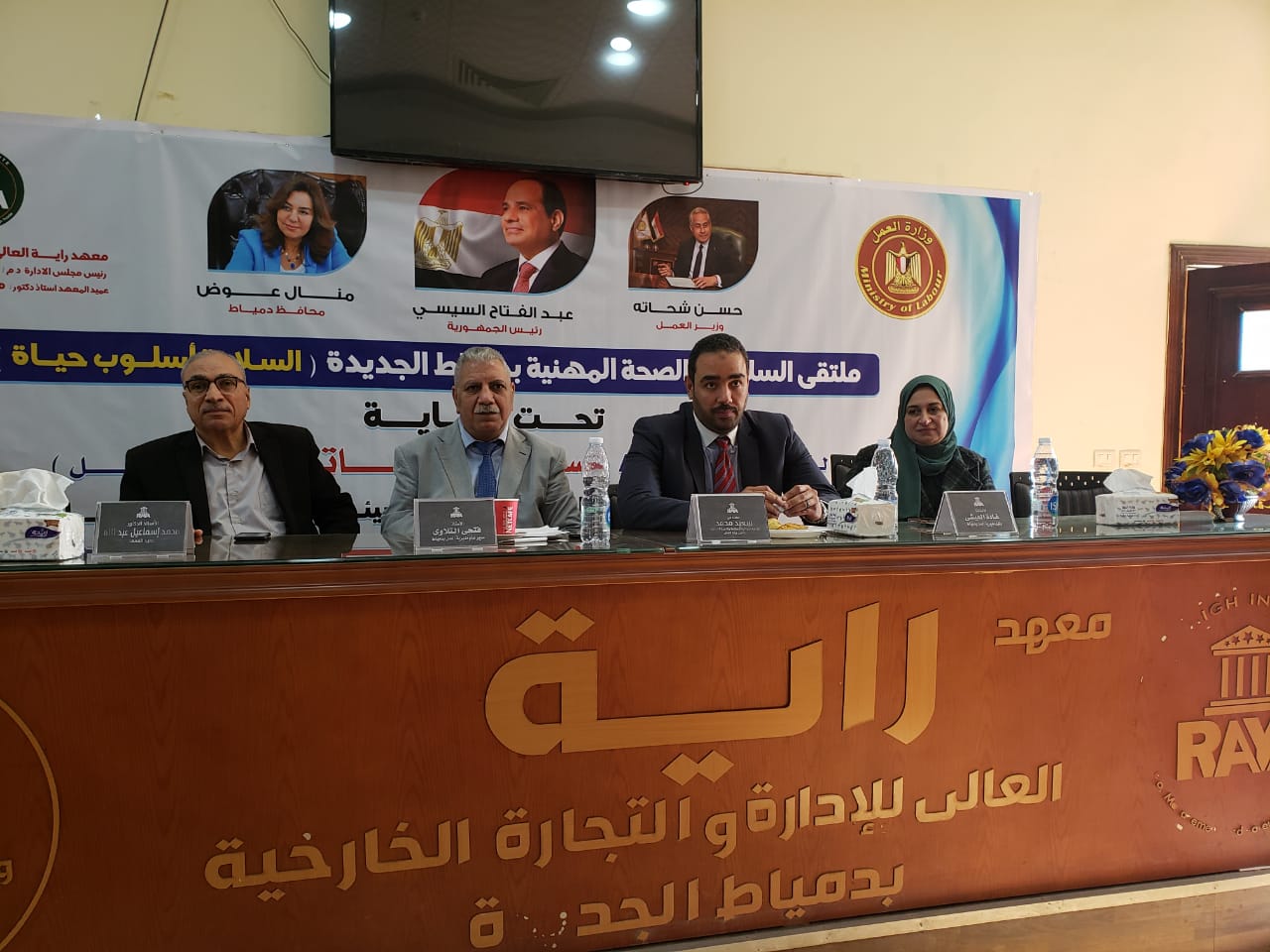 قالت وزارة العمل، إن الإدارة المركزية للسلامة والصحة المهنية وتأمين بيئة العمل بالوزارة ، بالتعاون مع مديرية العمل بمحافظة دمياط ، أختتمت فعاليات ملتقى السلامة والصحة المهنية تحت عنوان " السلامة أسلوب حياة " تحت رعاية وزير العمل حسن شحاتة ، بالمعهد العالي للادارة و التجارة الخارجية (راية) بمدينة دمياط الجديدة ، بحضور 70 مسئول سلامة وصحة مهنية بشركات القطاع الخاص من مختلف القطاعات ، وذلك ضمن جهود الوزارة والمديرية فى نشر أساليب السلامة والصحة المهنية ومفاهيمها وإشتراطاتها بين العاملين بالمنشآت داخل المحافظات للحفاظ على العنصر البشرى أساس التنمية وكذلك المنشىت والممتلكات من مخاطر بيئة العمل المختلفة.