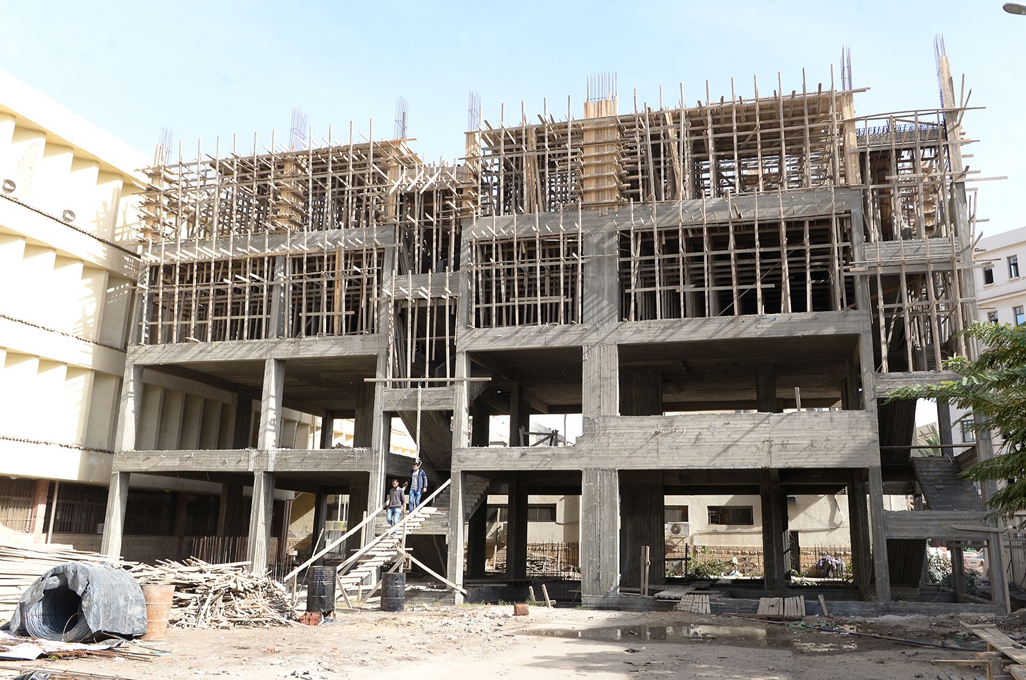 كما تفقد رئيس الجامعة  ما تم من انشاءات بمبنى التوسعات الجديد بمركز الأورام