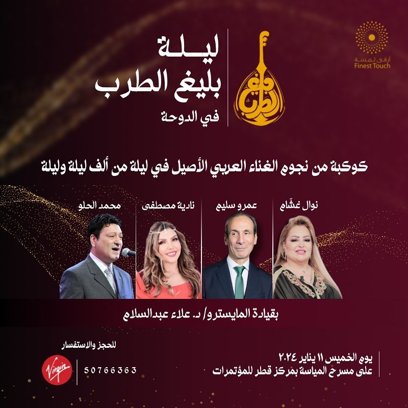 ليلة بليغ طرب، أمسية غنائية من نوعٍ خاص لتكريم الملحن الكبير بليغ حمدي مع أبرز الأصوات العربية للمرة الأولى على أحد المسارح الكبرى في قطر.