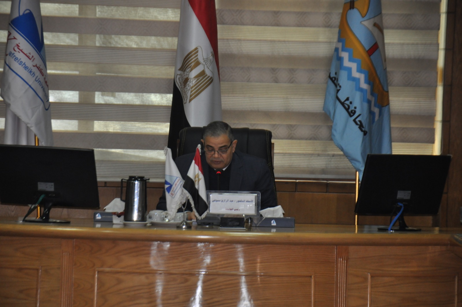 عقد مجلس عمداء جامعة كفر الشيخ ، الثلاثاء برئاسة الدكتور عبد الرازق دسوقي رئيس الجامعة، اجتماعه الشهري لمناقشة واستعراض المستجدات والموضوعات الشهرية المعروضة على المجلس، بحضور الدكتور محمد عبد العال نائب رئيس الجامعة لشئون التعليم والطلاب، والدكتور اسماعيل القن نائب رئيس الجامعة للدراسات العليا والبحوث، والدكتور أماني شاكر نائب رئيس الجامعة لشئون خدمة المجتمع وتنمية البيئة.