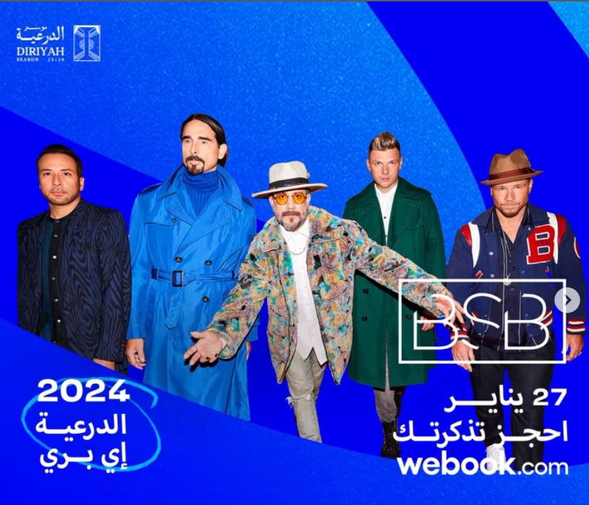 يستقبل موسم الدرعية حفل غنائي للفرقة الأمريكية الشهيرة BackStreet Boys، ضمن سباق الفورمولا الذي يضم عدد كبير من نجوم الغناء العربي والعالمي.