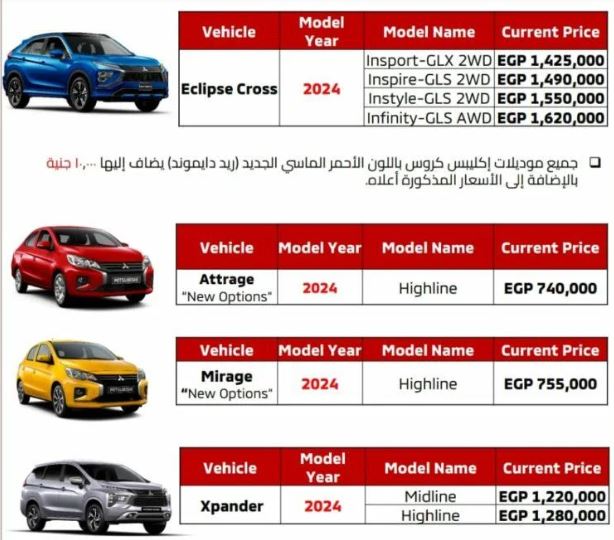 أسعار سيارات ميتسوبيشي موديل 2024 بعد ارتفاعاها اليوم
