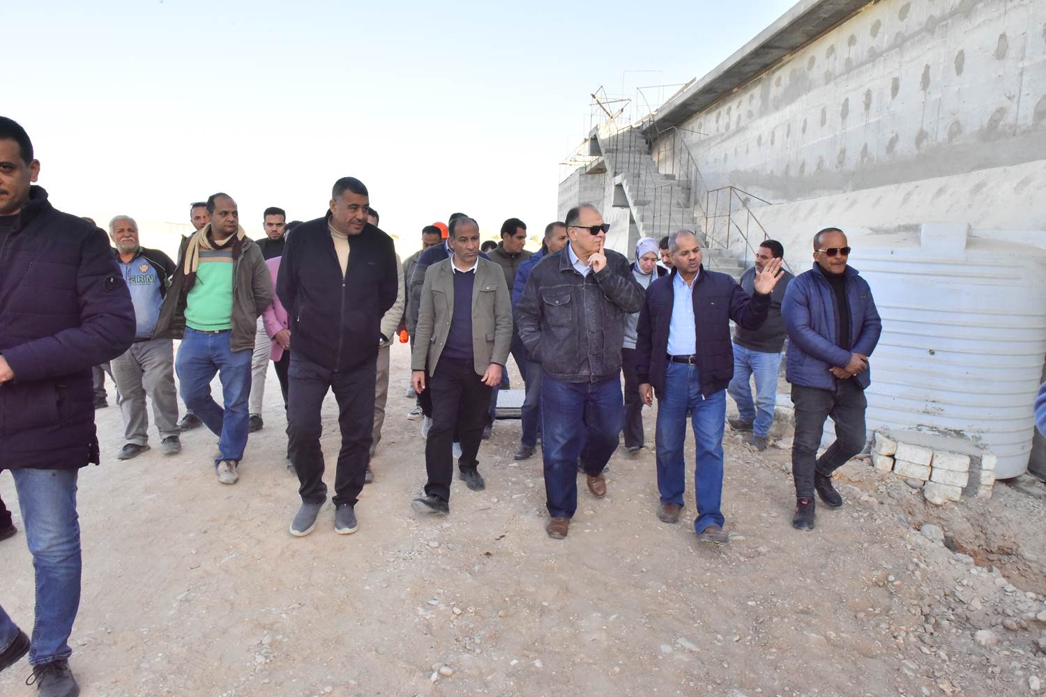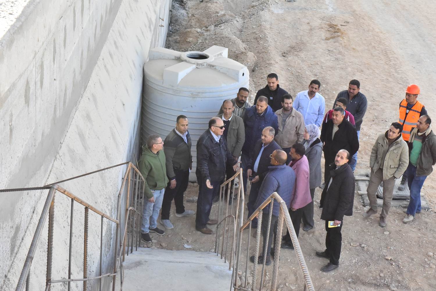 رافقه خلال الجولة المهندس صابر عبدالرؤوف مدير تنفيذ الأعمال بالجهاز التنفيذي للهيئة القومية لمياه الشرب والصرف الصحي بأسيوط، والمهندسة وفاء أحمد سيد مدير تنفيذ الأعمال بالجهاز التنفيذي للهيئة القومية لمياه الشرب والصرف الصحي بأسيوط، وعبدالرؤوف النمر رئيس مركز ومدينة الفتح، والمهندس مصطفى عبدالمقصود مدير فرع أسيوط بشركة المقاولون العرب، والمهندس خالد بديع مدير مشروعات شرق أسيوط للمقاولون العرب، والمهندس مصطفى عبدالمجيد مدير مشروع محطة صرف صحي عرب الكلابات، وأحمد جابر مدير العلاقات العامة بشركة المقاولون العرب فرع أسيوط المنفذة للمشروع.
